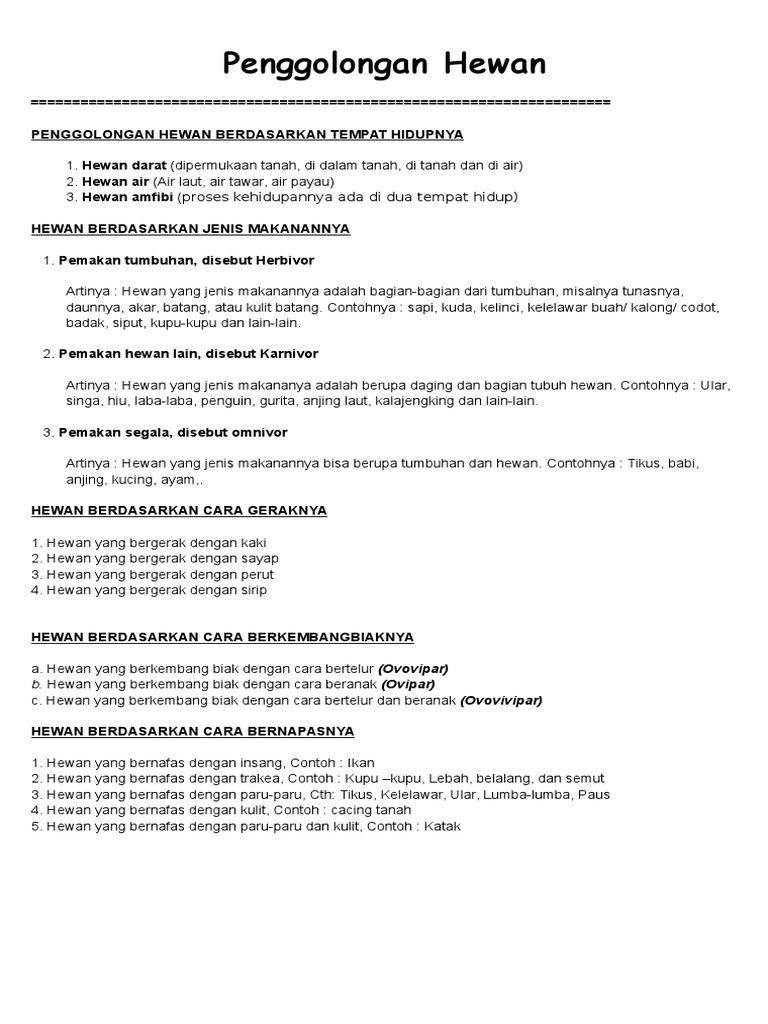 Penggolongan Hewan Dan Contoh Soalnya Pak Mono
