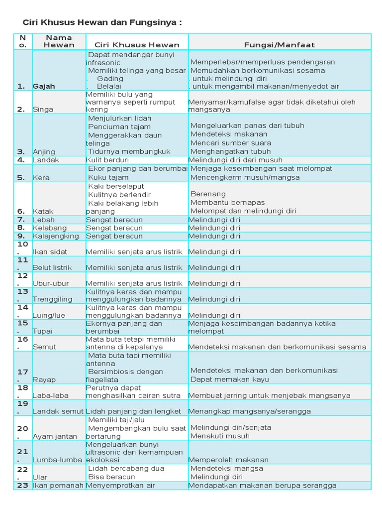 Ciri Ciri Khusus Hewan Pembelajaran Di Sekolah Dasar