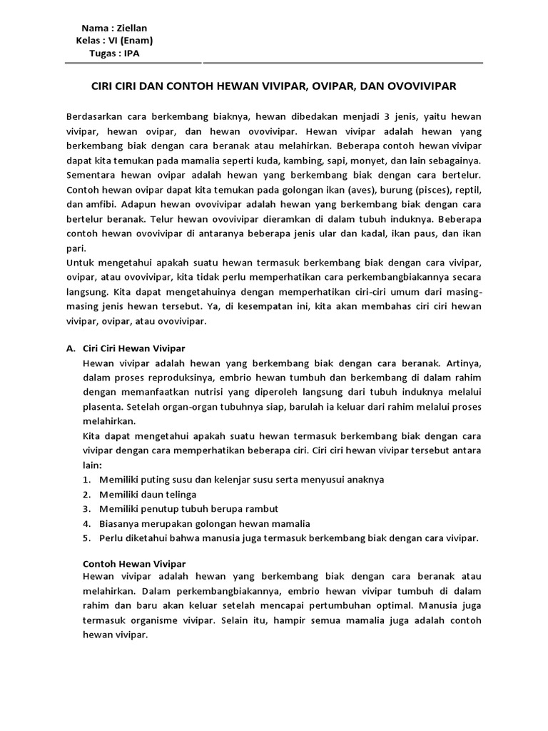 Contoh Hewan Vivipar Hisham Id