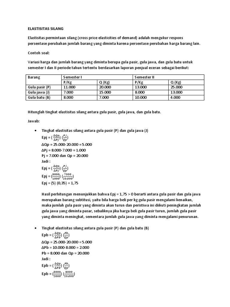 Contoh Soal Elastisitas Harga Dan Elastisitas Silang Beserta