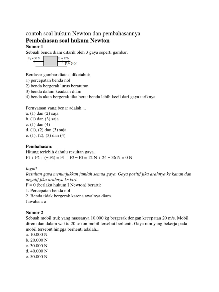 Contoh Soal Hukum Newton Beserta Pembahasannya Zip Typo