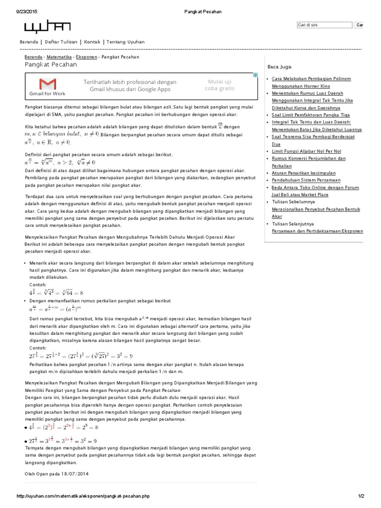Pelajaran Soal Rumus Bentuk Pangkat Pecahan Wardaya College