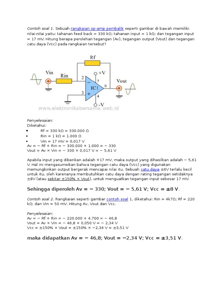 Tahanan feed back 330 kw. Contoh soal op amp 2.
