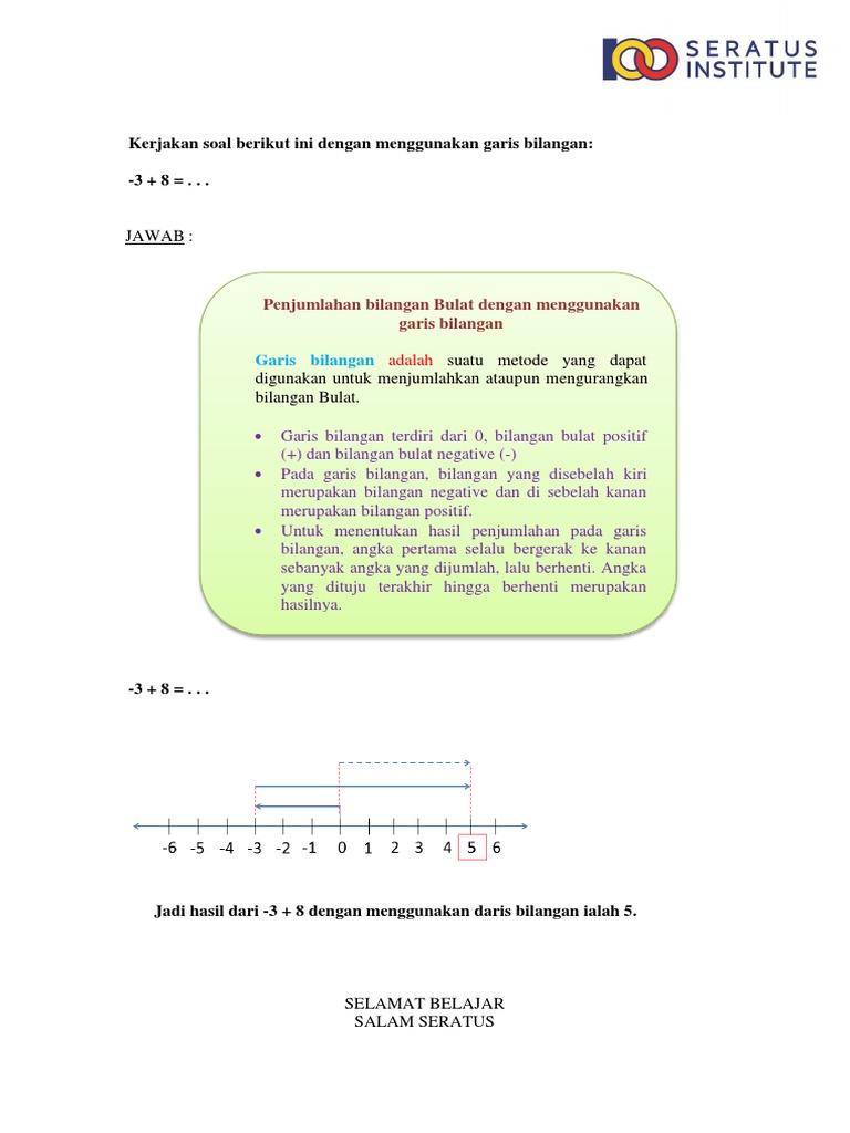 Bilangan Bulat Contoh Soal Penjumlahan Dengan Garis Bilangan