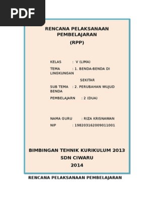 Rpp Kelas 5 Sd Kurikulum 2013 Revisi Tahun 2017 Integrasi