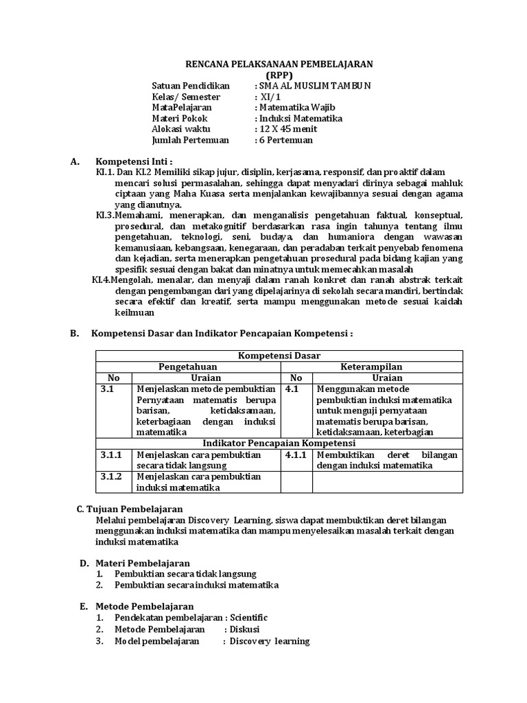 Rpp Kd 3 1 Induksi Matematika Fix