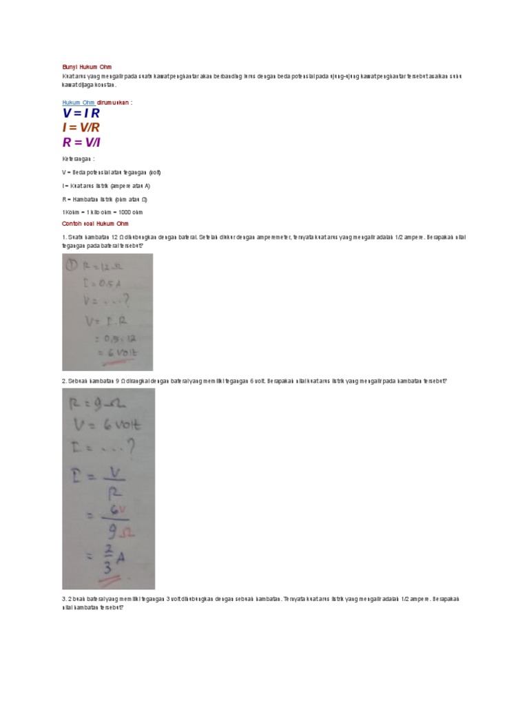 Tolong Berikan Contoh Soal Fisika Kls 9 Tentang Hukum Ohm
