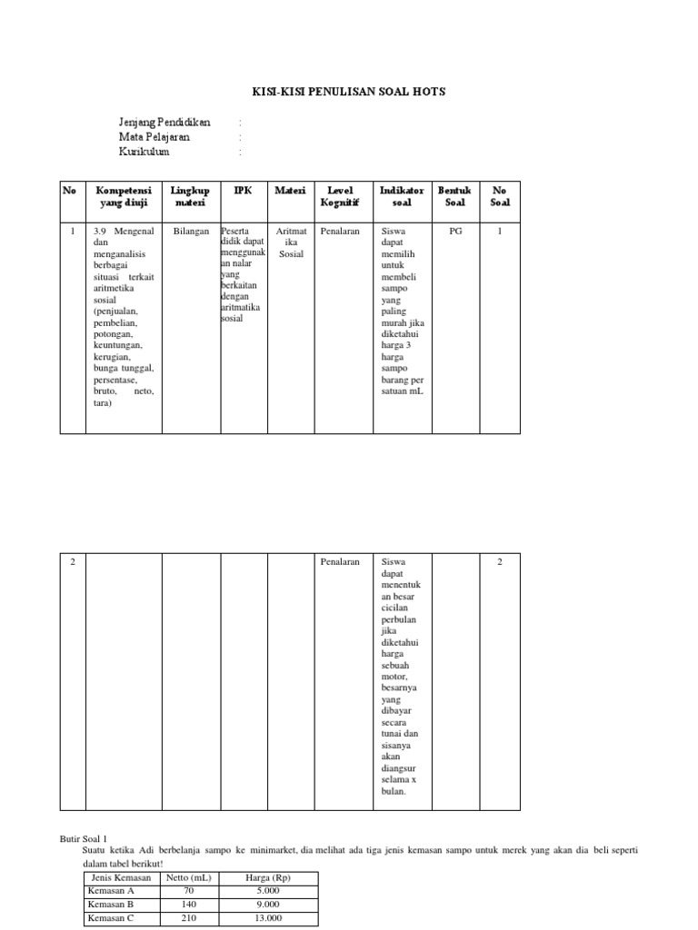 Penulisan Soal Hots 3 Contoh Soal Hots