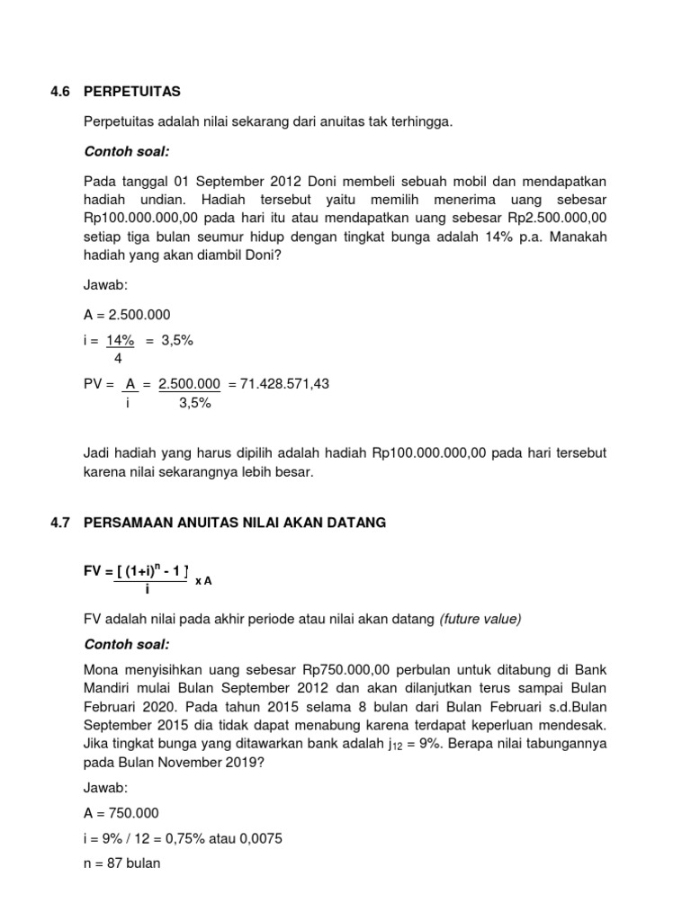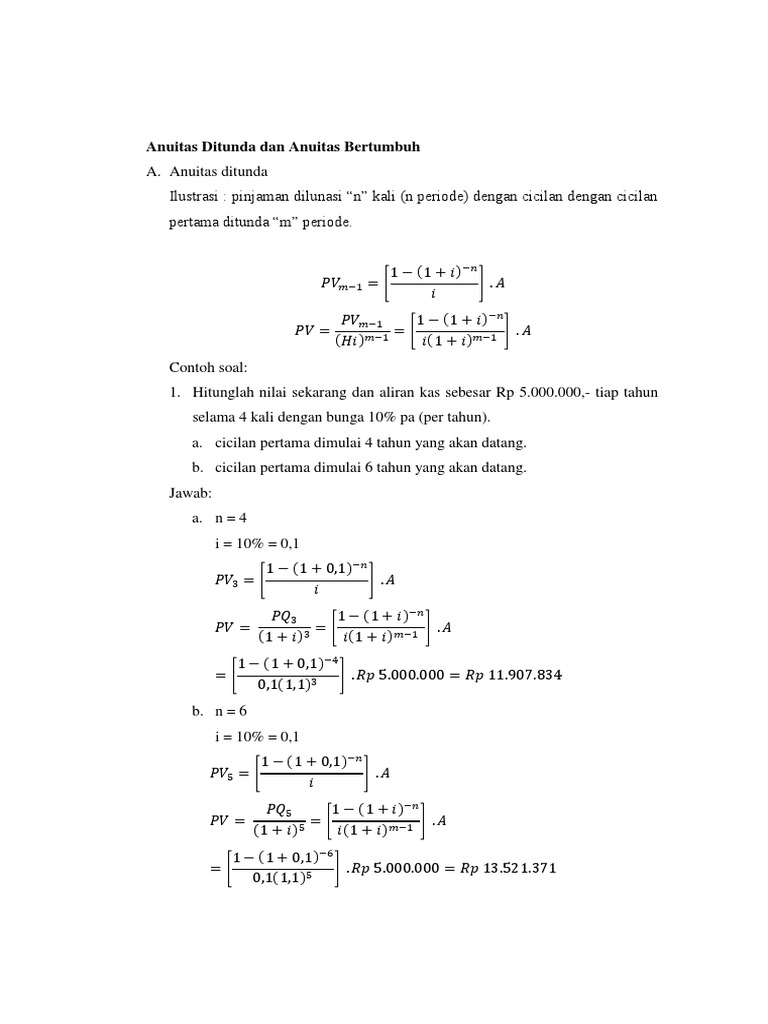 Contoh Soal Nilai Sekarang Anuitas. 49 contoh 4.6 berapa nilai sekarang dari uang sebesar rp 10.000.000 setiap empat bulan seumur hidup mulai 4 bulan yang akan datang, bila dikenakan tingkat bunga 12% p.a.? Download unduh kumpulan contoh soal anuitas dengan pembahasannya dan jawabannya dalam matematika biasa dan ditunda serta lainnya.