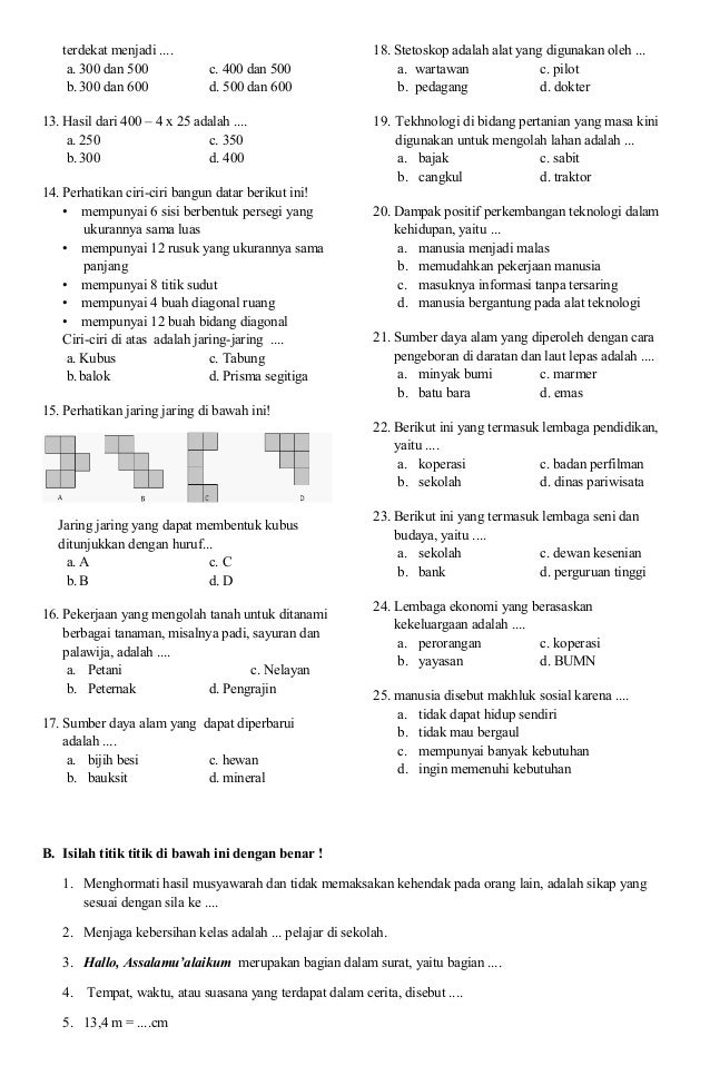 Soal Ulangan Kelas 4 Tema 7 Kurikulum 2013 Sekolahdasar Net from 2.bp.blogspot.com Soal tematik kelas 4 tema 4 subtema 3, tema berbagai pekerjaan subtema pekerjaan orang. Berapakah keliling pintu pesawat 9. Selamat datang kembali di blog ahzaa, kali ini lanjutkan lagi latihan soal ulangan hariannya ya.