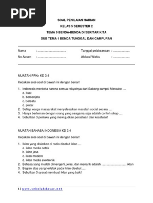 Soal Penilaian Harian Kelas 5 Tema 9 Subtema 1 Pdf from imgv2-1-f.scribdassets.com Berikut ini pak mono memberikan contoh soal kelas 5 tema 4 subtema 2 semester 1. Perlu diingat bahwa soal ini hanya sebagai soal latihan saja. Pada postingan ini kita membahas contoh soal modus data tunggal, tabel frekuensi, sebaran frekuensi data penyelesaiannya.